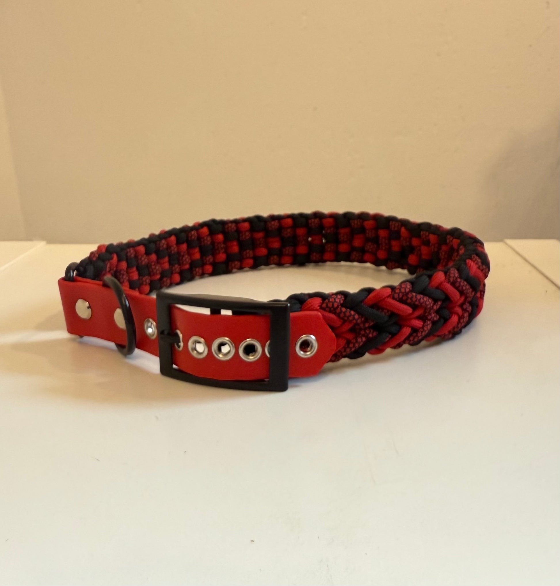 Sichere Flechttechnik, langlebige Materialien und echte Handarbeit für einen Hund.